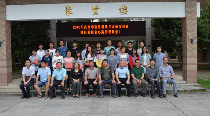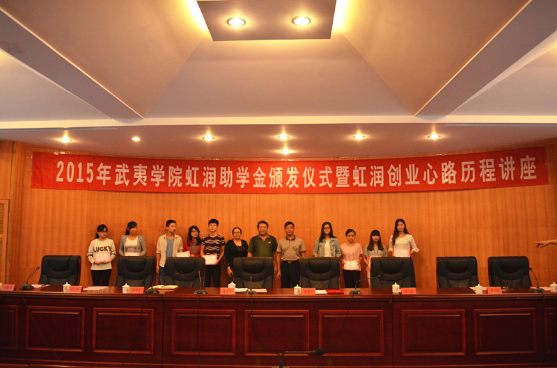 姚進(jìn)生、林善平等與會(huì)領(lǐng)導(dǎo)為獲得虹潤助學(xué)金的同學(xué)頒發(fā)了證書。林善平用自己的創(chuàng)業(yè)歷程告訴同學(xué)們要尊重自我,在暫時(shí)的逆境中砥礪品格,磨練意志,用自己的努力不斷增長(zhǎng)知識(shí)和才干,在以后的人生歷程中選擇更輝煌的道路。