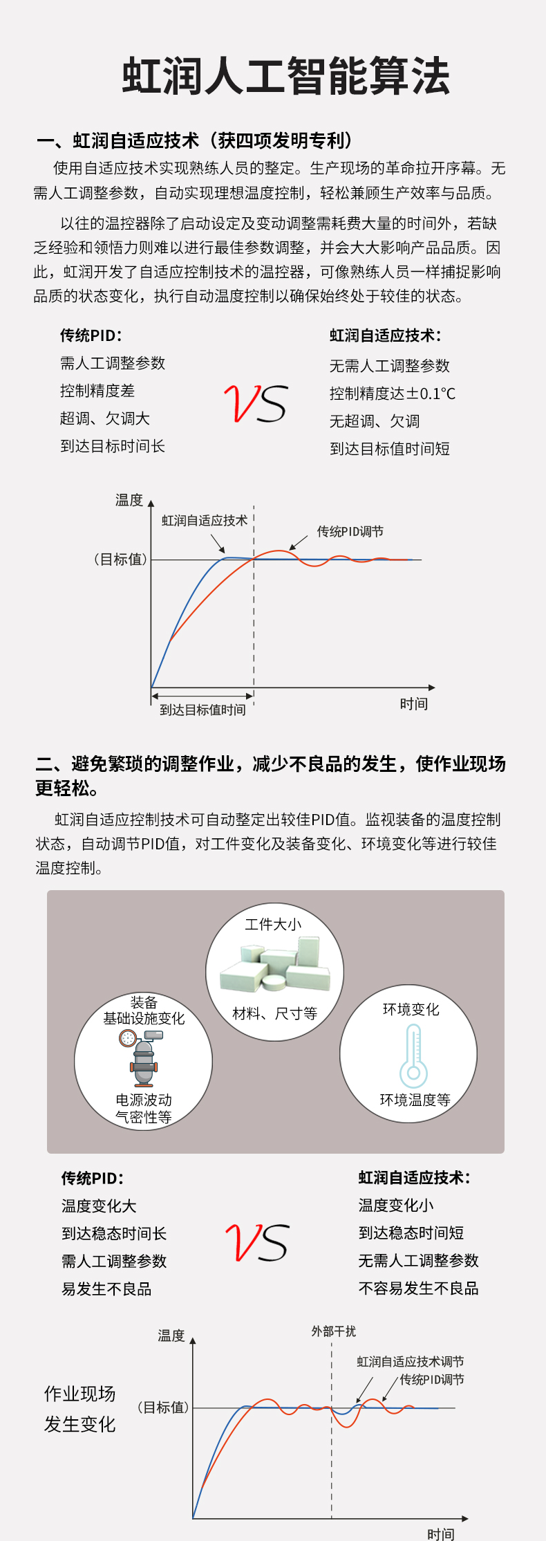 虹潤公司是專業(yè)生產(chǎn)無紙記錄儀的國家專精特新“小巨人”企業(yè)。生產(chǎn)的觸摸屏調(diào)節(jié)無紙記錄儀,具有觸摸大屏顯示,真正人工智能算式,無需人工整定參數(shù),控制精度達(dá)士0.1°C,數(shù)據(jù)記錄與轉(zhuǎn)存, RS485/以太網(wǎng)通訊,5/7/9英寸可選等特點(diǎn)。產(chǎn)品獲得智能化控制器、人工智能調(diào)節(jié)器及調(diào)節(jié)方法、模糊PID控制儀及控制方法、平板無紙記錄儀、巡回檢測(cè)顯示方法及裝置等5項(xiàng)國家發(fā)明專利,主持起草物聯(lián)網(wǎng)智能記錄儀表通用技術(shù)條件、物聯(lián)網(wǎng)智能溫度儀表通用技術(shù)條件、工業(yè)過程測(cè)量和控制系統(tǒng)用智能調(diào)節(jié)器等3項(xiàng)國家標(biāo)準(zhǔn),通信系統(tǒng)多通道數(shù)據(jù)采集控制終端規(guī)范軍用標(biāo)準(zhǔn),以及空間數(shù)據(jù)與信息數(shù)據(jù)傳輸系統(tǒng)等2項(xiàng)航天標(biāo)準(zhǔn),參與國際5G標(biāo)準(zhǔn)制定,取得觸摸屏彩色調(diào)節(jié)無紙記錄儀等3項(xiàng)相關(guān)軟件著作權(quán)。產(chǎn)品廣泛應(yīng)用于電力、石化、冶金、化工、食品、制藥、熱處理、水處理、機(jī)械配套等諸多領(lǐng)域。