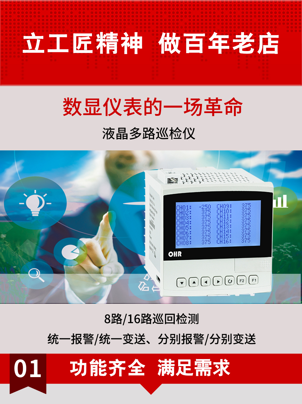 虹潤(rùn)公司是專業(yè)生產(chǎn)多路溫度巡檢儀的國(guó)家專精特新“小巨人”企業(yè),生產(chǎn)的液晶多路巡檢儀,具有8路/16路測(cè)量通道,全切換信號(hào)輸入,統(tǒng)一報(bào)警統(tǒng)一變送輸出,分別報(bào)警分別變送輸出,RS485/RS232通訊等特點(diǎn)。產(chǎn)品獲得巡回檢測(cè)顯示方法及裝置、儀表殼體等2項(xiàng)國(guó)家發(fā)明專利,主持起草工業(yè)過程控制系統(tǒng)用模擬輸入兩位或多位輸出儀表、物聯(lián)網(wǎng)智能溫度儀表通用技術(shù)條件等2項(xiàng)國(guó)家標(biāo)準(zhǔn),以及通信系統(tǒng)多通道數(shù)據(jù)采集控制終端規(guī)范軍用標(biāo)準(zhǔn),參與國(guó)際5G標(biāo)準(zhǔn)制定,取得液晶多回路測(cè)量顯示控制儀等4項(xiàng)相關(guān)軟件著作權(quán)。產(chǎn)品廣泛應(yīng)用于電力、石化、冶金、制藥、水處理、機(jī)械配套等各種工業(yè)現(xiàn)場(chǎng)。