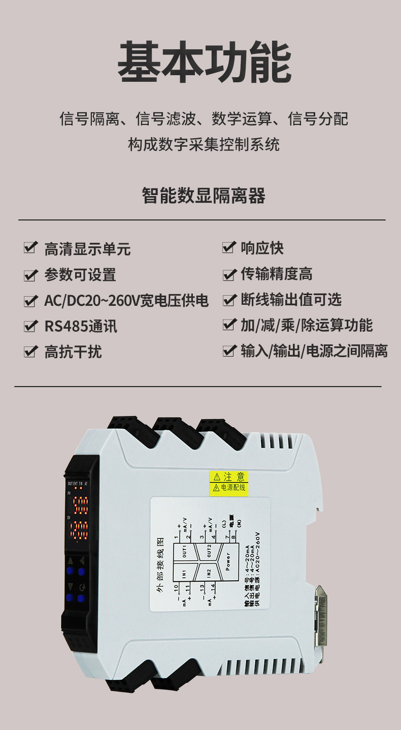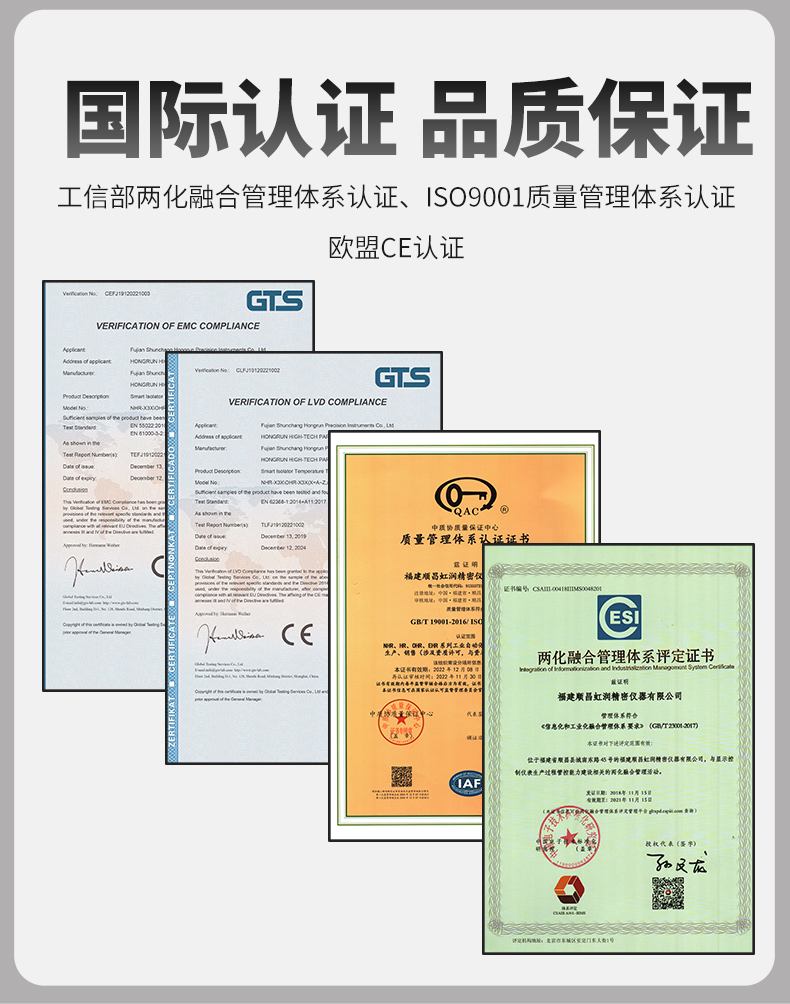 虹潤公司是專業(yè)生產(chǎn)隔離器的國家專精特新“小巨人”企業(yè)。生產(chǎn)的導(dǎo)軌式智能隔離器 ,具有高清顯示單元,參數(shù)可設(shè)置,寬電源供電,響應(yīng)快,帶RS485通訊等特點。產(chǎn)品獲得信號隔離器、一種二端子模塊、無源信號隔離器等3項國家發(fā)明專利,主持起草現(xiàn)場設(shè)備工具(FDT)接口規(guī)范、工業(yè)過程測量和控制系統(tǒng)用隔離式安全柵、工業(yè)過程測量和控制系統(tǒng)用配電器等3項國家標準,以及通信系統(tǒng)多通道數(shù)據(jù)采集控制終端規(guī)范軍用標準,參與國際5G標準制定,取得智能隔離器等2項相關(guān)軟件著作權(quán)。產(chǎn)品廣泛應(yīng)用于電力、石化,冶金、制藥、水處理、機械配套等各種工業(yè)現(xiàn)場。