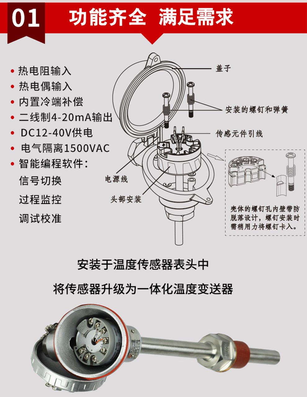 虹潤公司是專業(yè)生產(chǎn)溫度變送器的國家專精特新“小巨人”企業(yè)。生產(chǎn)隔離智能溫度變送器,具有適配各類溫度傳感器,精度高,穩(wěn)定性好,通過編程線修改輸入信號類型及量程,高抗干擾等特點。該產(chǎn)品不僅通過HART基金會認證、德國萊茵 CE 認證與 SIL 功能安全認證,還獲得具備減震抗干擾能力的溫度變送器、信號隔離器、一種二端子模塊、無源信號隔離器等4項國家發(fā)明專利,主持起草物聯(lián)網(wǎng)智能溫度儀表、現(xiàn)場設備工具(FDT)接口規(guī)范、工業(yè)過程測量和控制系統(tǒng)用溫度變送器等3項國家標準,以及通信系統(tǒng)多通道數(shù)據(jù)采集控制終端規(guī)范軍用標準,參與國際5G標準制定,取得智能溫度變送器、HART溫度變送器等3項相關軟件著作權。產(chǎn)品廣泛應用于石油、化工、電力、冶金、制藥、食品、水處理等各種工業(yè)領域。