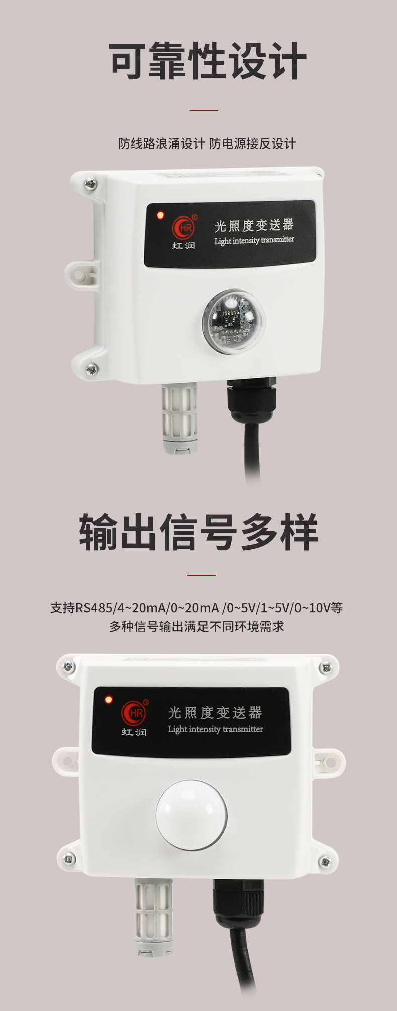 虹潤公司是專業(yè)生產(chǎn)環(huán)境監(jiān)測儀表的國家專精特新“小巨人”企業(yè)。生產(chǎn)的光照度變送器,具有高精度感光傳感器,響應(yīng)靈敏,準(zhǔn)確度高,低功耗,模擬量變送輸出或RS485通訊等特點(diǎn)。產(chǎn)品獲得一種農(nóng)業(yè)監(jiān)控變送器、一種儀表電源等2項實用新型專利,主持起草現(xiàn)場設(shè)備集成等5項智能制造國家標(biāo)準(zhǔn),以及現(xiàn)場設(shè)備工具(FDT)接口規(guī)范、物聯(lián)網(wǎng)總體技術(shù)智能傳感器特性與分類等2項國家標(biāo)準(zhǔn),參與國際5G標(biāo)準(zhǔn)制定,取得農(nóng)業(yè)監(jiān)測變送器等3項相關(guān)軟件著作權(quán)。產(chǎn)品廣泛應(yīng)用于溫室大棚、花卉養(yǎng)殖、科研實驗、智能樓宇、戶外照明等環(huán)境場合對光照度的檢測。