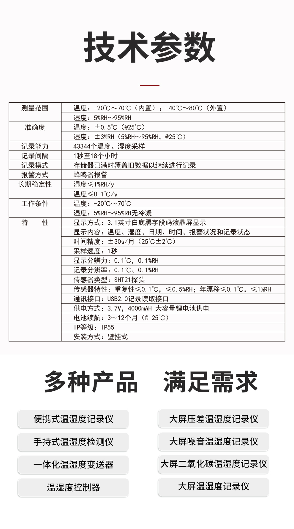 | 環(huán)境監(jiān)測儀 | 大屏溫濕度記錄儀 溫濕度儀表 環(huán)境參數(shù)變送器 直插式土壤傳感器 |