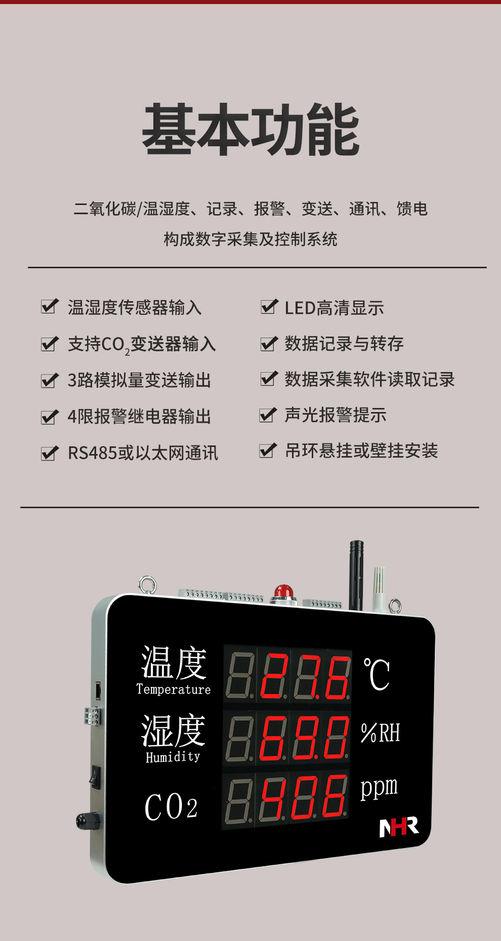 虹潤(rùn)公司是專業(yè)生產(chǎn)環(huán)境監(jiān)測(cè)儀表的國(guó)家專精特新“小巨人”企業(yè)。生產(chǎn)的大屏二氧化碳溫濕度記錄儀,具有高清大屏顯示,數(shù)據(jù)記錄與轉(zhuǎn)存,同步觸發(fā)可靠預(yù)警,RS485或以太網(wǎng)通訊等特點(diǎn)。產(chǎn)品獲得一種手持式低功耗溫濕度檢測(cè)儀、無紙記錄儀等2項(xiàng)國(guó)家發(fā)明專利,主持起草物聯(lián)網(wǎng)智能溫度儀表通用技術(shù)條件、冷鏈溫度記錄儀等2項(xiàng)國(guó)家標(biāo)準(zhǔn),通信系統(tǒng)多通道數(shù)據(jù)采集控制終端規(guī)范軍用標(biāo)準(zhǔn),以及現(xiàn)場(chǎng)設(shè)備集成等5項(xiàng)智能制造國(guó)家標(biāo)準(zhǔn),參與國(guó)際5G標(biāo)準(zhǔn)制定,取得大屏幕溫濕度數(shù)據(jù)記錄儀等3項(xiàng)相關(guān)軟件著作權(quán)。產(chǎn)品廣泛應(yīng)用于實(shí)驗(yàn)室、農(nóng)業(yè)大棚、倉(cāng)庫(kù)、工業(yè)現(xiàn)場(chǎng)、配電機(jī)房、畜牧業(yè)等諸多領(lǐng)域。