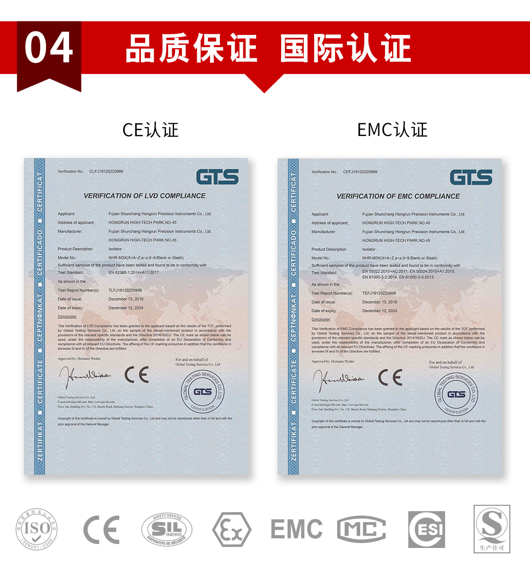 虹潤(rùn)公司是專業(yè)生產(chǎn)隔離器的國(guó)家專精特新“小巨人”企業(yè)。生產(chǎn)的智能信號(hào)隔離器涵蓋開關(guān)量轉(zhuǎn)換器、電流電壓變送器、溫度變送器、配電器、頻率轉(zhuǎn)換器及通訊轉(zhuǎn)換器等多種產(chǎn)品類型。產(chǎn)品獲得信號(hào)隔離器、一種二端子模塊、無源信號(hào)隔離器等3項(xiàng)國(guó)家發(fā)明專利,主持起草現(xiàn)場(chǎng)設(shè)備工具(FDT)接口規(guī)范、工業(yè)過程測(cè)量和控制系統(tǒng)用隔離式安全柵、工業(yè)過程測(cè)量和控制系統(tǒng)用配電器等3項(xiàng)國(guó)家標(biāo)準(zhǔn),以及通信系統(tǒng)多通道數(shù)據(jù)采集控制終端規(guī)范軍用標(biāo)準(zhǔn),參與國(guó)際5G標(biāo)準(zhǔn)制定,取得導(dǎo)軌式智能隔離器、頻率轉(zhuǎn)換器等3項(xiàng)相關(guān)軟件著作權(quán)。產(chǎn)品廣泛電力、冶金、工業(yè)電爐、變電站、高壓電機(jī)房等需要電隔離的工業(yè)自動(dòng)化控制系統(tǒng)。
