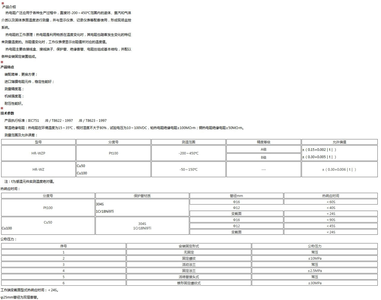熱電阻(thermal resistor)是中低溫區(qū)最常用的一種溫度檢測(cè)器。熱電阻測(cè)溫是基于金屬導(dǎo)體的電阻值隨溫度的增加而增加這一特性來(lái)進(jìn)行溫度測(cè)量的。它的主要特點(diǎn)是測(cè)量精度高,性能穩(wěn)定。其中鉑熱電阻的測(cè)量精確度是最高的,它不僅廣泛應(yīng)用于工業(yè)測(cè)溫,而且被制成標(biāo)準(zhǔn)的基準(zhǔn)儀。
