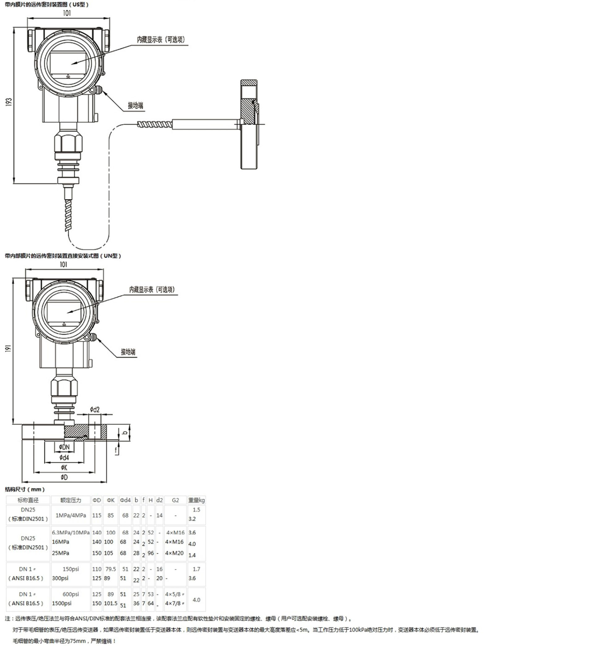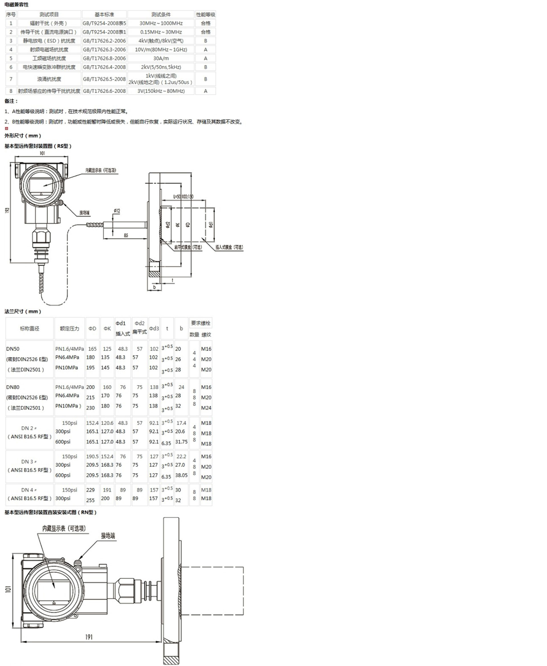 該產(chǎn)品用于測量液體、氣體或蒸汽的液位、密度、壓力,將其轉變成4~20mA (HART)電流輸出信號,可通過RST375手持終端對它們進行參數(shù)設定、過程監(jiān)控等。測量范圍(未遷移時)為0-6kPa~25MPa,液位法蘭的額定壓力分別為:1.6/4MPa、6.4MPa、10MPa、150psi、300psi或600psi。